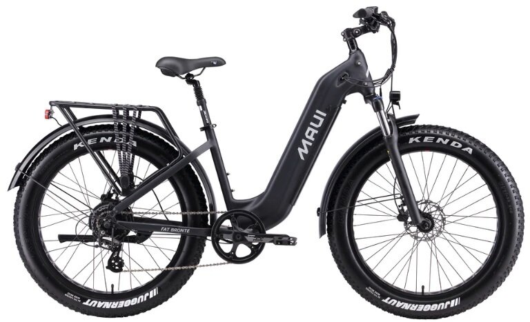 Enjoy the best of both worlds with the Fat BRONTE: the easy accessibility of a step-thru electric city bike paired with the rugged capability of 4" fat bike tires for assured comfort regardless of road or trail conditions. The combination of its 500W Bafang motor, Samsung battery, and Tektro hydraulic disc brakes offers you peace of mind during all of your adventures.